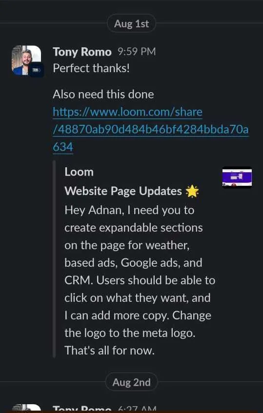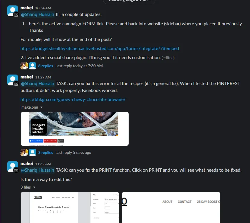 Slack is the tool we use for task assignment and instant communication—it works on both desktop and mobile, so you’re always connected to your designer.
